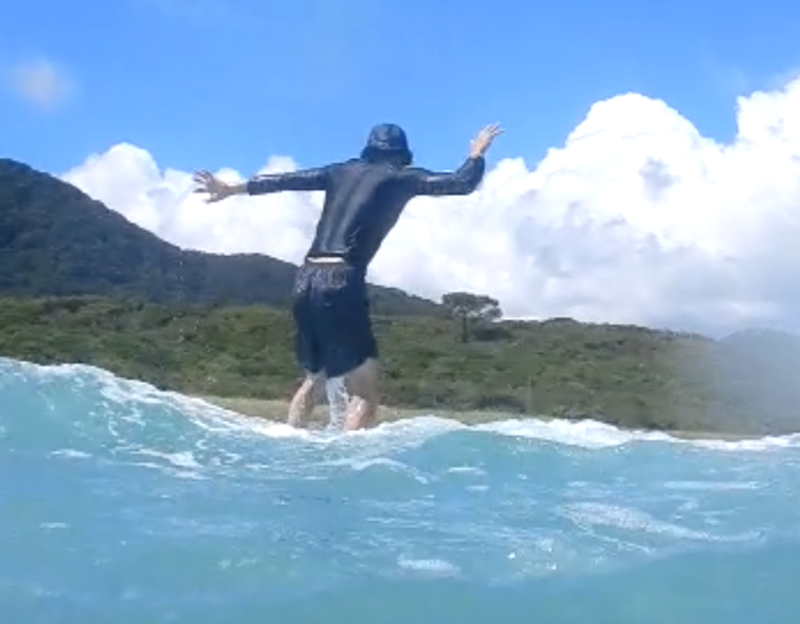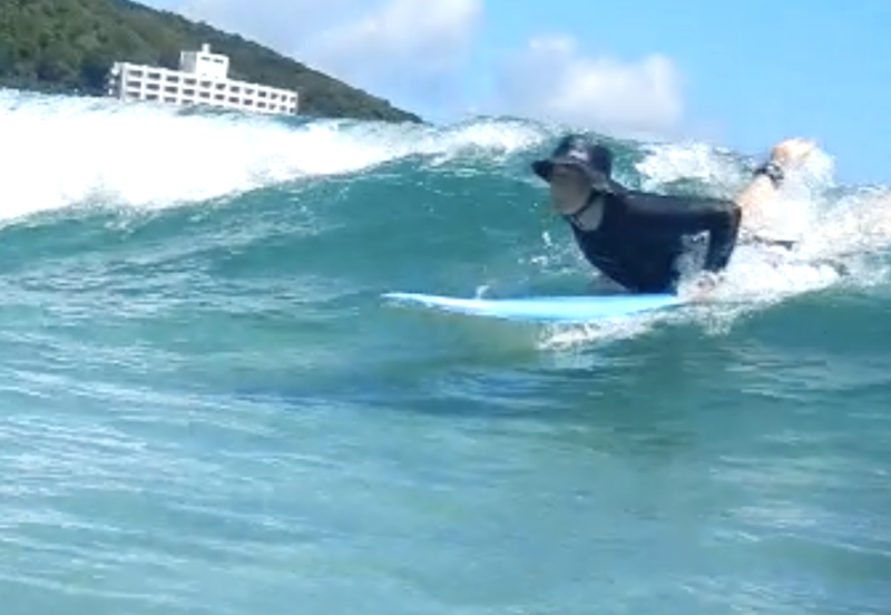 今回の回のレッスンの中で、波に乗るための基本動作をしっかり学び取り、自分で波に乗れる形が出来上がってきましたね!