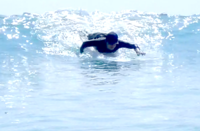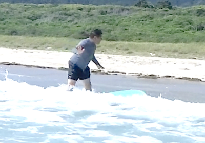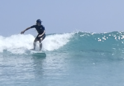 はじめてのサーフィンながら、 身体と頭の柔らかさを持たれていて、 アドバイスに対して 柔軟に修正し、早い段階で自分で波に乗れる形ができてきたAさん。