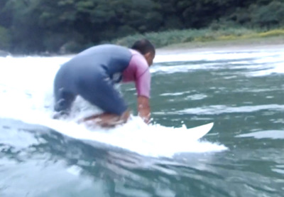 そして、 パドリングフォームをもう一度見直し、良いポジション、良いフォームの中で楽なパドリングができるようになり、ゆとりを持ってテイクオフのタイミングを図れるようになってきました!