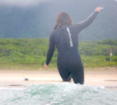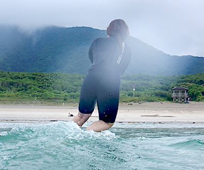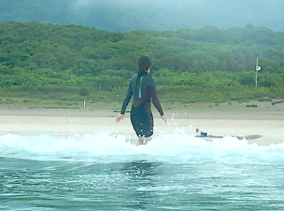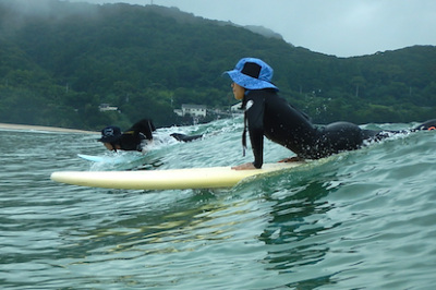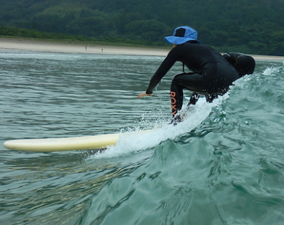初めてのサーフィンのKさん。前半バランスを崩していた原因を冷静に修正!!