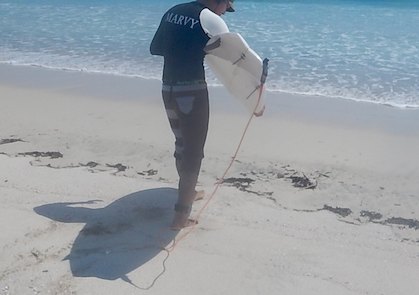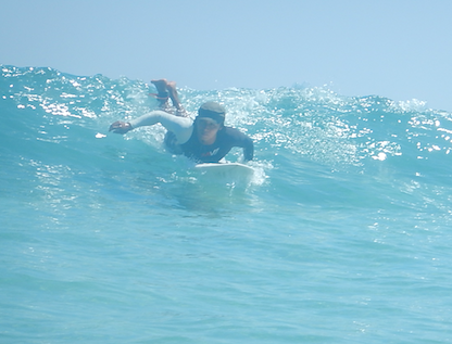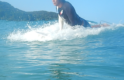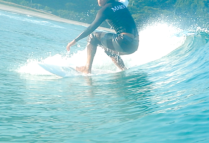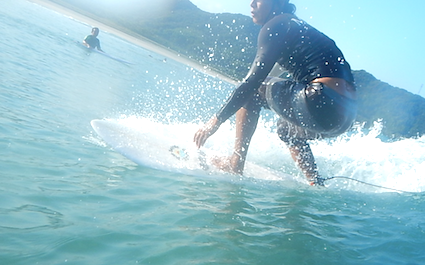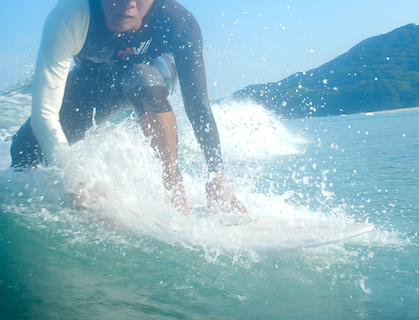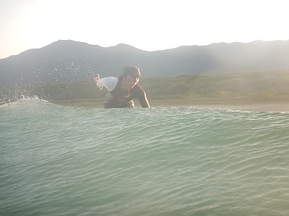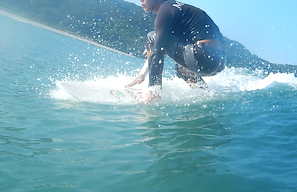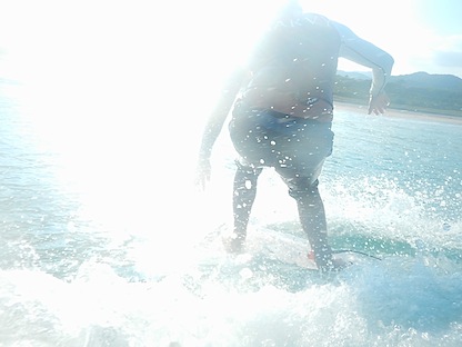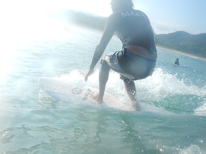 サーフィンは上手いOさん。レベルが高いのサーファーがやっている波の捕らえ方、ポジショニング、テイクオフ動作を意識的にトライ!さらに速いテイクオフを目指します。