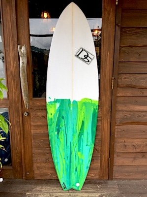 Rちゃんのボードは対照的にややボリューム感と重さを持たせたベーグルエアー。ボリュームは持たせてありますが、女性でもレールを入れやすいようある程度落としてシェイプしてくれています。