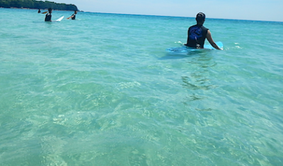 この夏の強~い日差しと透明度が、この美しい海の色を作り出します!!気持ちいい~