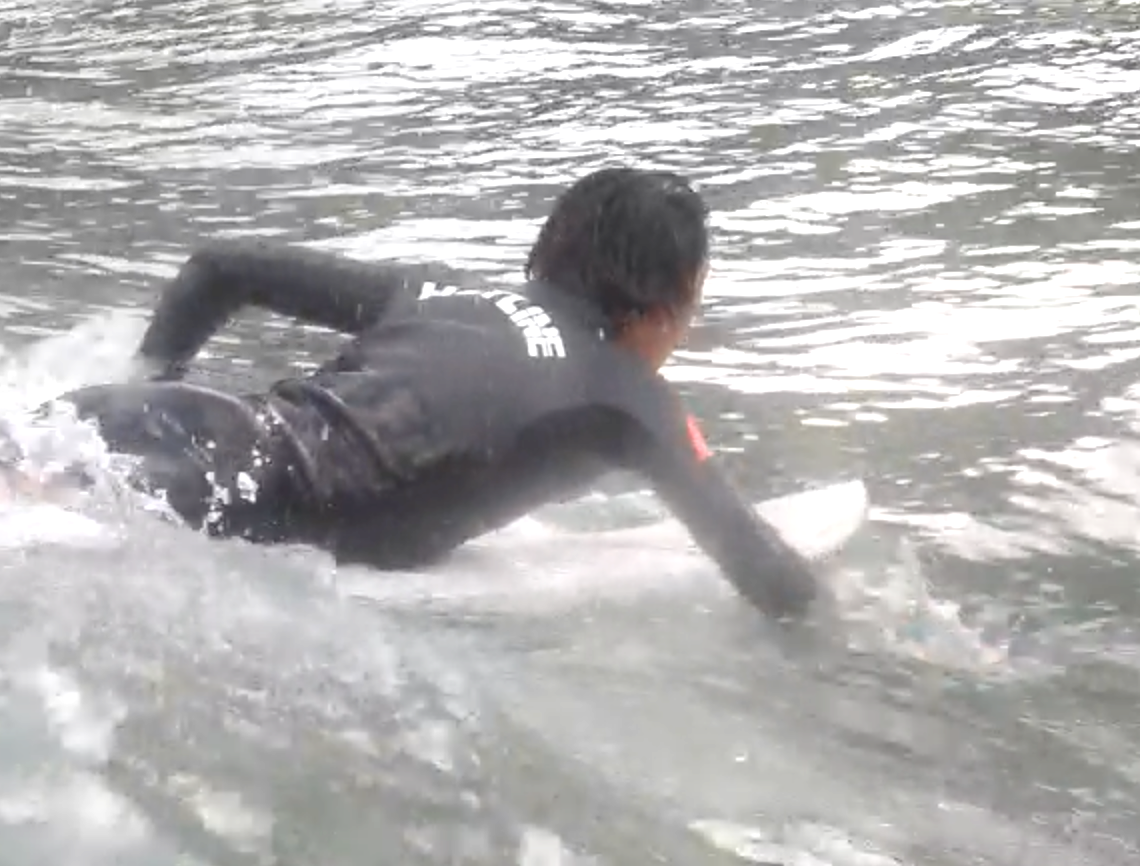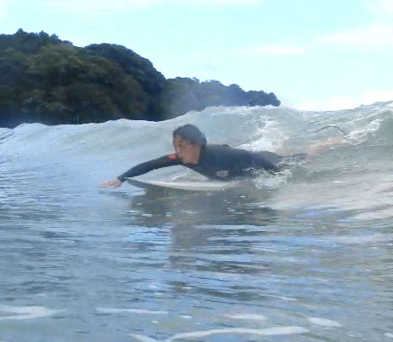 それができたとき、パドルするスピードと、テイクオフするタイミングが1歩ずつ早くでき、成功するチャンスが大きく広がったように思います!