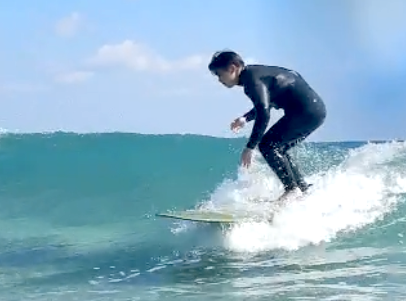 動画解析で、前回のスケートトレーニングの 動きをサーフィン に どうリンクさせていくかをイメージ。