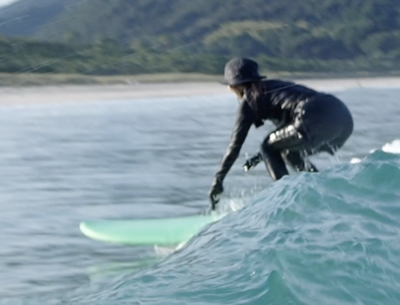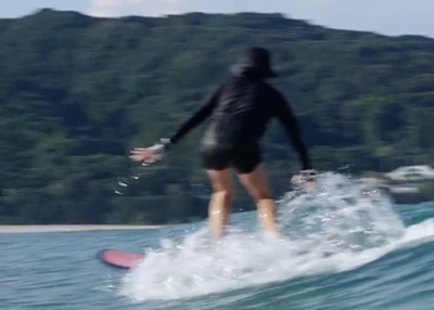 今回はさらにパドルスピードを上げて早いテイクオフをし、より早く波のフェイスを捉える練習。