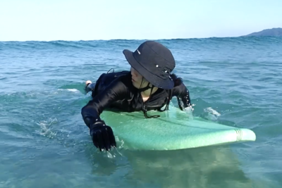 マイボードを 手にして、横に 曲がれるようになってきて、サーフィンが隣に面白くなって言っています。