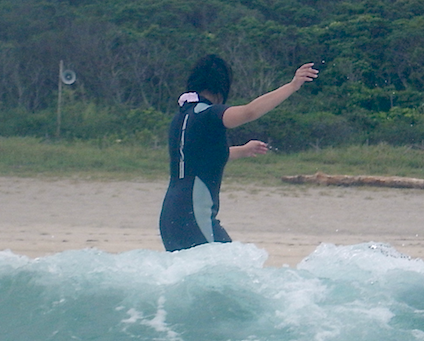 定期的に受けてくれているKさん。今日は波を見つけ自分で波を捕えテイクオフする練習の予定でしたがトリッキーすぎる波だったのでその練習は中止