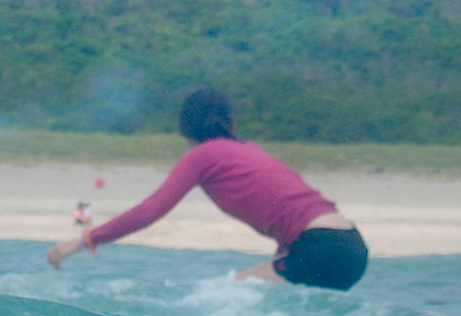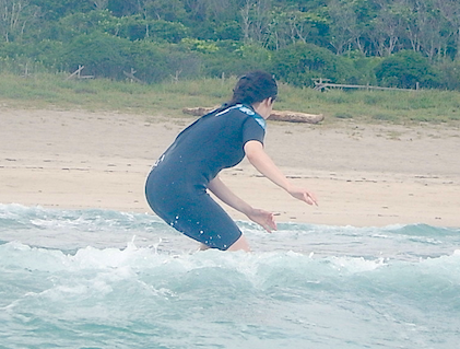 波が変化し足を取られそうな場面でもしっかり重心が乗り安定したライディング!!ダンスで培ったバランスと体感、何よりも軸がまっすぐ。その後も岸の岸まで長~いロングライド決めていましたね~ お上手でした