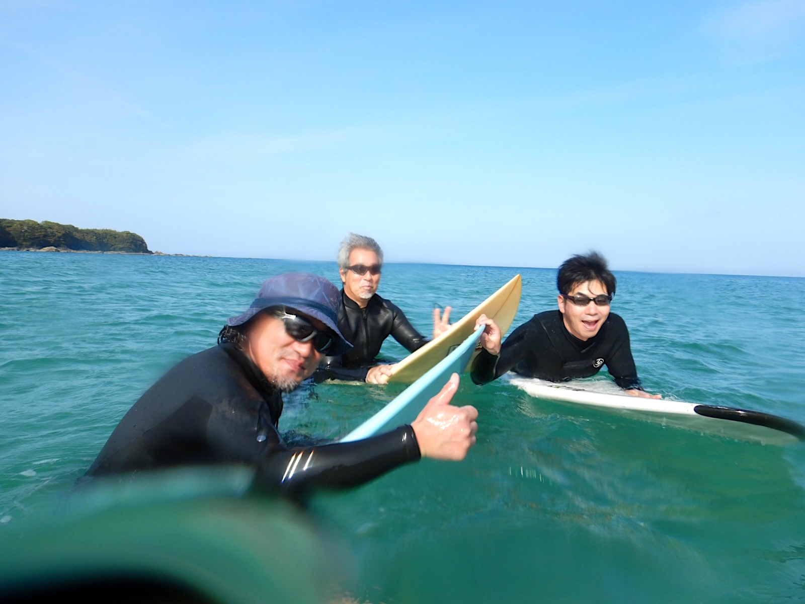 明日もまた3人で楽しいサーフィンしてください ね!