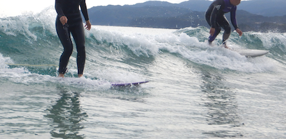 こうやって自然にうねりからテイクオフし横へ走らせて行く姿は、レッスンを受けはじめた当初では想像できていなかった事。ということはこの先にはさらに想像できないくらい楽しいことが待っているように思います!!