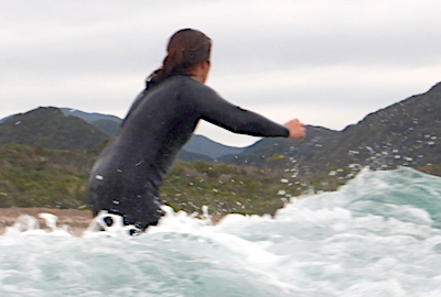 さすがねえさん。この小さな波でのパーリングでここまで板が飛ぶのは神業!!(笑)