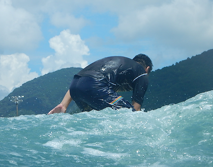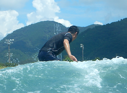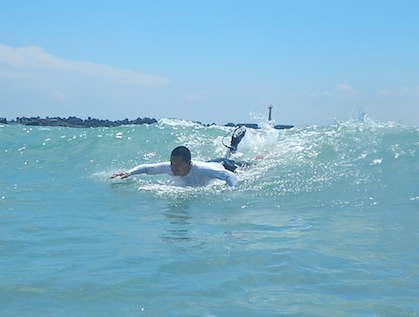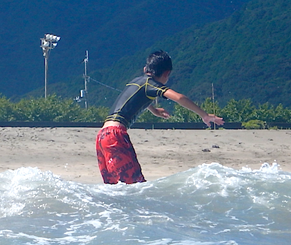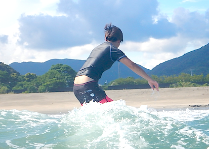 初サーフィン、初ライド、初テイクオフで成功させてしまったYさん。