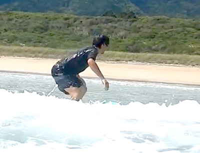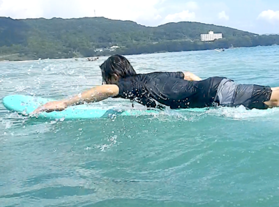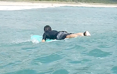 2回目のレッスンでは、絶対に連れて行かないポジションまで行き、 波にチャレンジ!