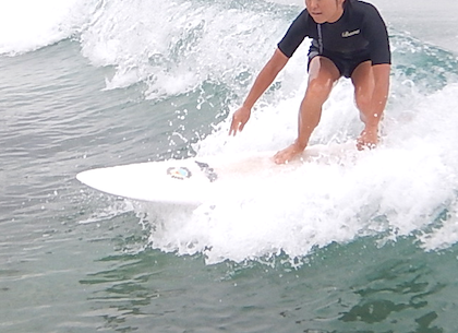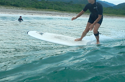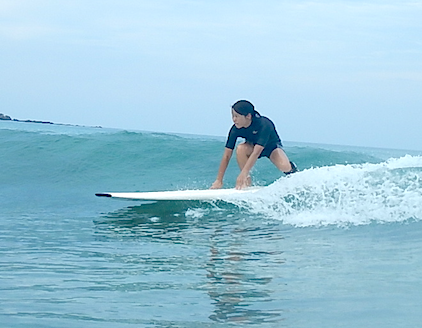 ショートもロングも楽しんでいるので、レッスンの方向を変えロングボードでのレッスンちゅんポイントき