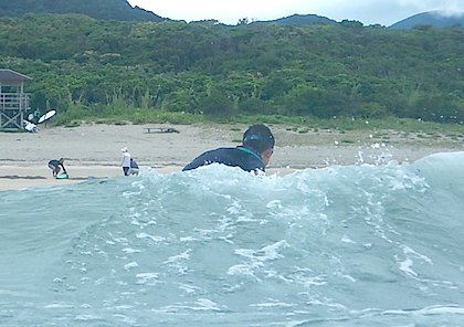 沖の沖までゲッティングアウト!! 年に1~2回のサーフィンで少しづつ上手になりましたね~
