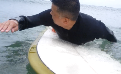 自分で 波に乗るためのパドリング、 ポジションから 波に乗るための見極め、 失速しない テイクオフ動作を練習!