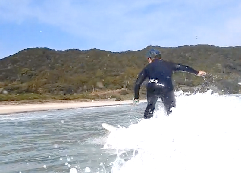 前回のレッスン 以降、波に乗れる本数が増えたというIさん。 喜んでもらえてうれしいです!