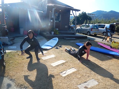まずはサーフィンのイメージとテイクオフトレーニングからスタート。