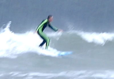 最後の 波では、ショートボードでは遅れてしまう波を追いかけ、早いタイミングでテイクオフ!ライディングにつなげることができました!