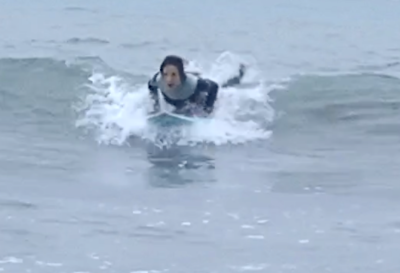 これまでと違うボードに戸惑い、難しい波でタイミングも合わず、最初は思うように乗れなかったですが、徐々にパドリングや動作にも慣れてきて安定!