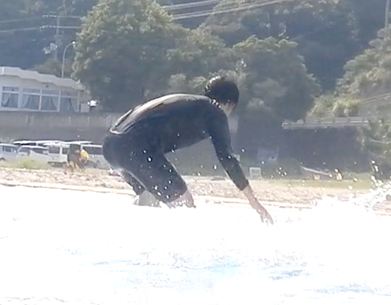 自分で波にトライするしていく時間にもしっかりと自分でテイクオフしていっていました!