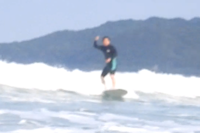 サーフィン経験はまだ4、5回。 今年は2回目。