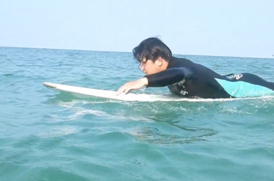 前回は僕のサポートでサーフィン。今回は自分自身で波に 乗る!