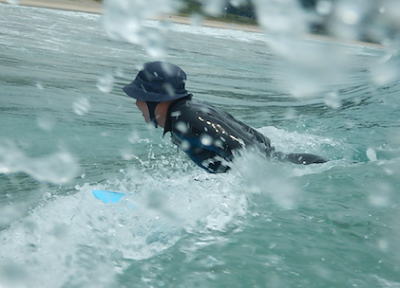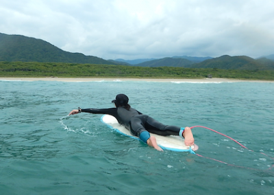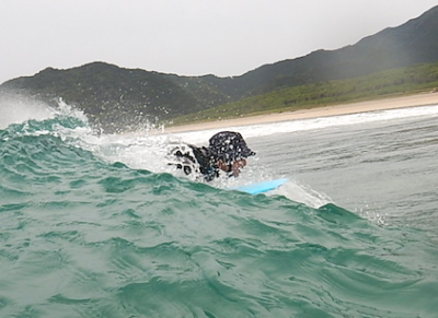 初めてのレッスンのSさん。ただサーフィンの経験はしっかり積んでおられます。