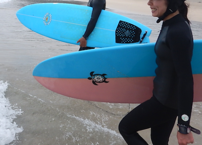 「前回のレッスンからサーフィンが楽しくなった」というMくん。まだまだ先にはもっともっと楽しいことが待っています(笑)