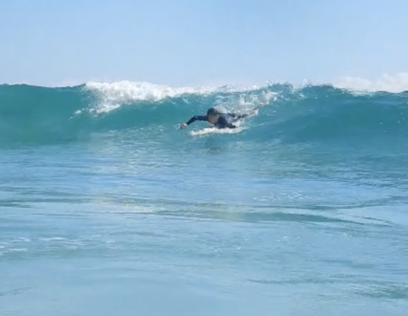 パワーに頼らず、力を抜いてスムーズにパドリングすることで、実は楽に早くテイクオフできると言うことを感じてもらえたように思います。