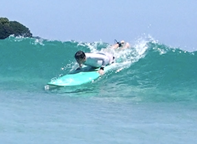 今回、パドリングフォームを見直したことによって、テイクオフの時の加速が上がり、ゆとりを持ってテイクオフに入れるようになったFさん