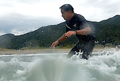 基礎練習は心にも身体にもゆとりのある中で繰り返し練習できるほうが効率が良いので、クリーンな小波の海は自動車教習所のような練習に絶好な場所。