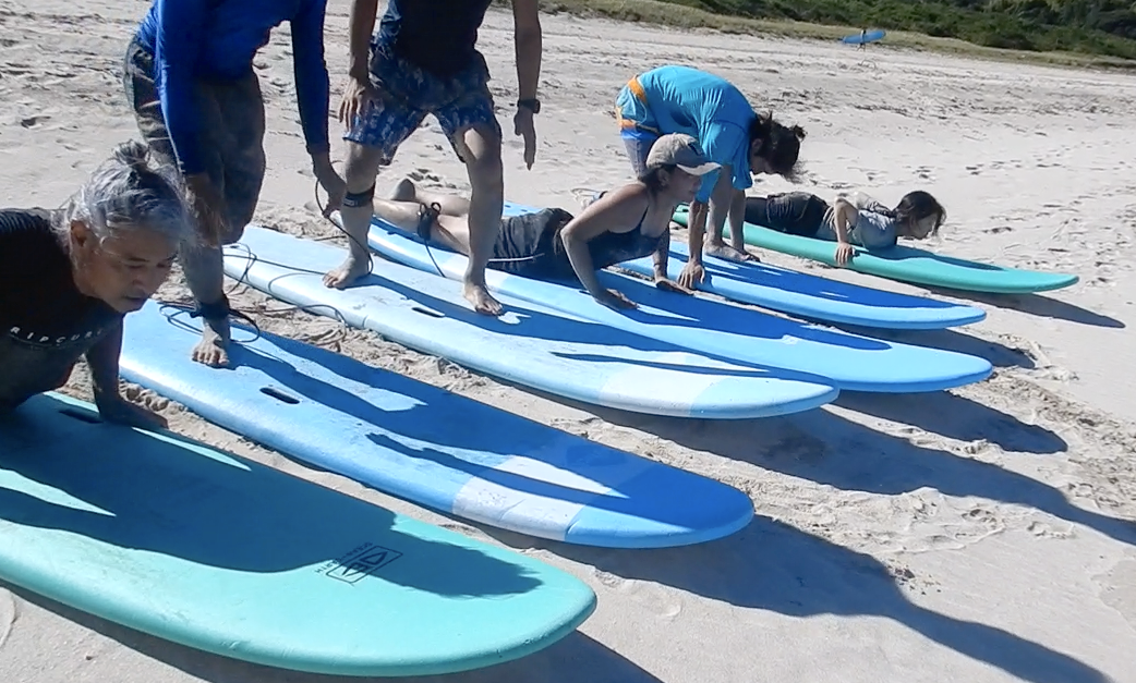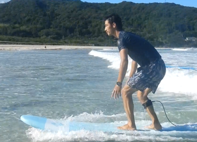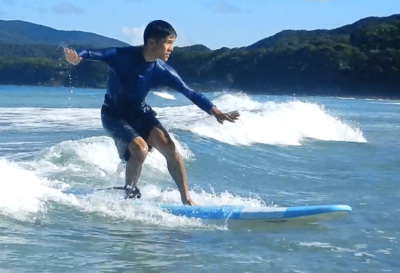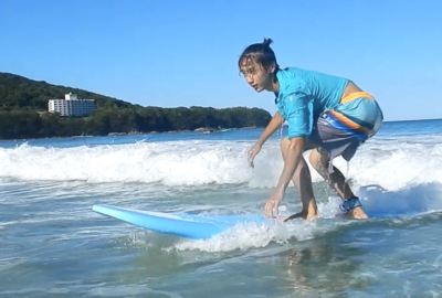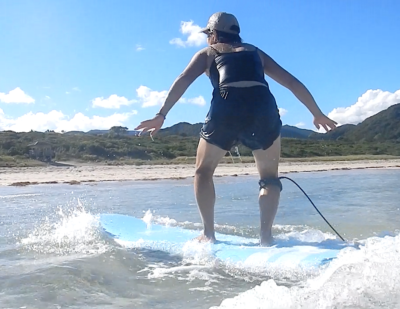 はじめてのサーフィンできなり、自分でうねりかきれいにテイクオフされていました!