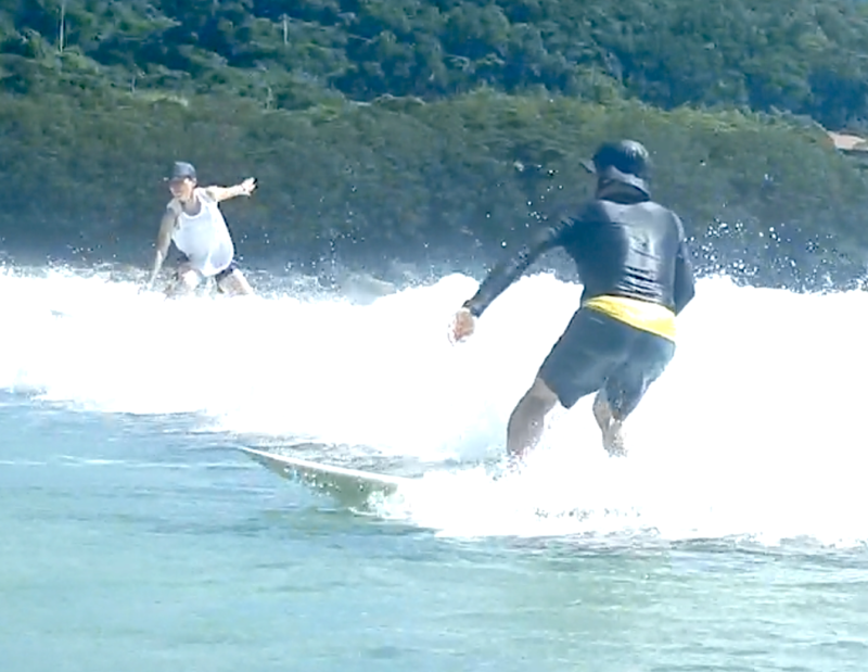 後半、波のパワーが無くなり 僕のMIDレングスで同じ動作にトライすると、完璧にアップスで加速し、素晴らしいライディングを決めてくれましたね!!