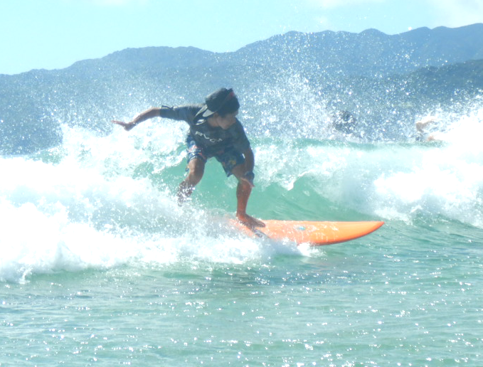 サーフィンはGWからわずか2回目。そんな中でも身体が正常に動くことで、すぐに課題をクリア!!