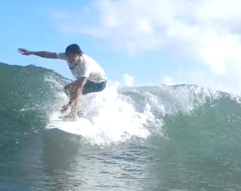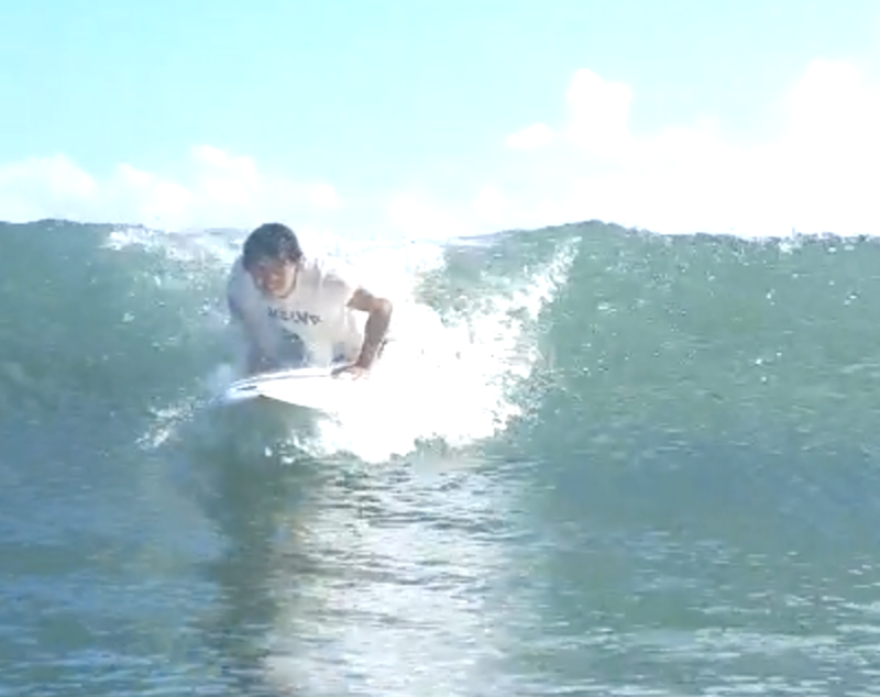 既にソフトボードではなく、長めのショートボードにチャレンジしている。
