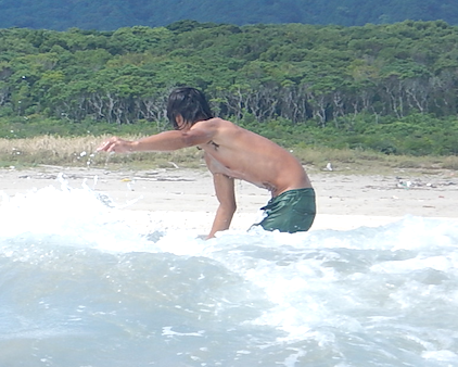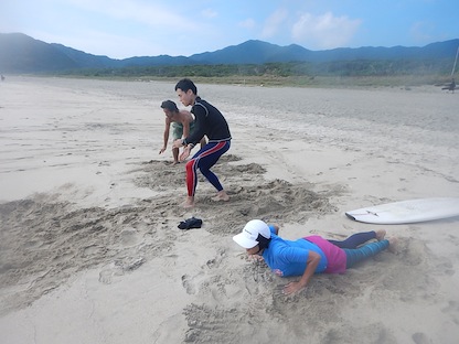 自分で積極的に波にトライ!!何本か自分でテイクオフしていましたね!これからハマっていきそうですね!