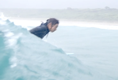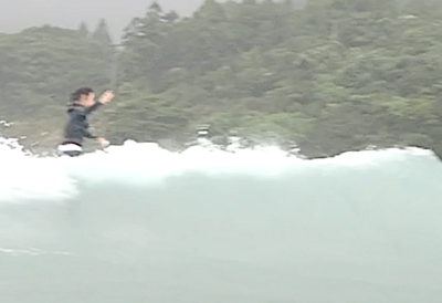 ジャンクで急に波が消えたり、急に波がブレイクしたりする。難しいコンディションの中、テイクオフの速さを生かし、積極的に波に トライ!!