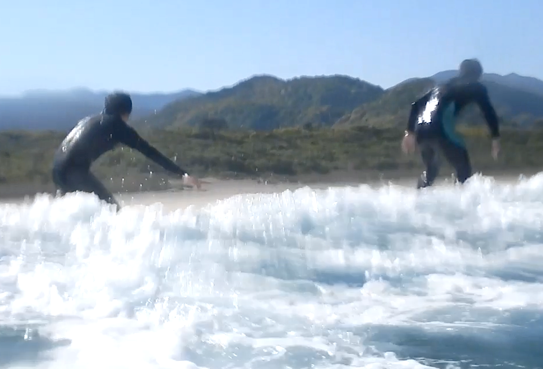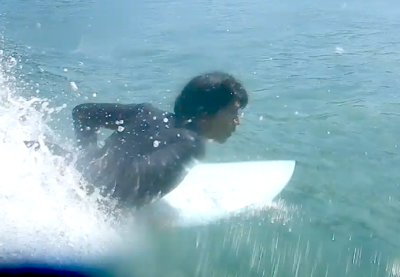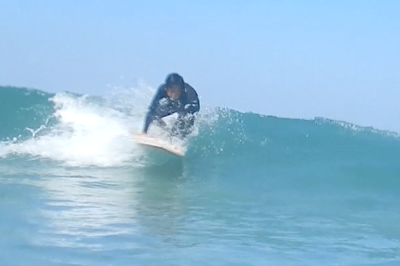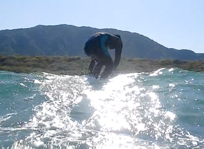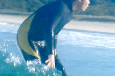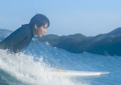 昨年、たった半年のサーフィンで、 自分で波を捉え、横に走るところまで上達するほどの センスの持ち主。