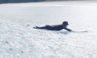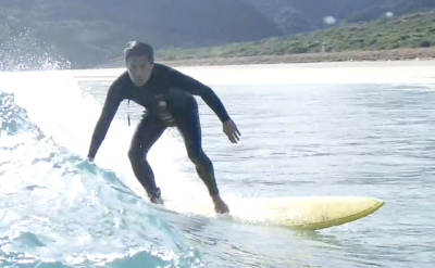 何の妨げも ないテイクオフが決まり、波の斜面を スムーズに捉え、横に走ることに成功できました!