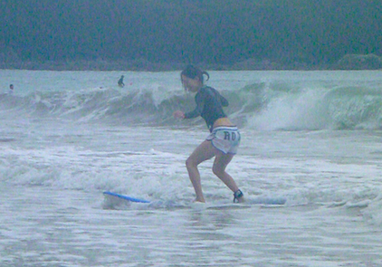 彼女だけヨガはやっていないですが、滅多に来ない良い波に当たるラッキーさと、無意識にボードが安定する場所にスタンスを調整する才能も持っておられて波が無くなるまでロングライド決めていましたね