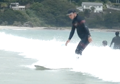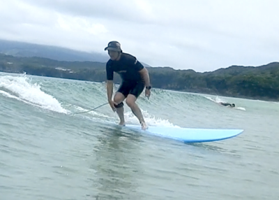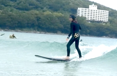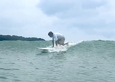 スムーズな テイクオフから波の斜面を滑走していくことができましたね!! 徐々にサーフィンが スタイリッシュになってきました!