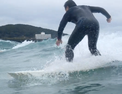 弱い波でもきれいな テイクオフを決めていましたね。