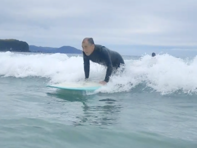 Kさんは50代中盤からサーフィンをスタート。