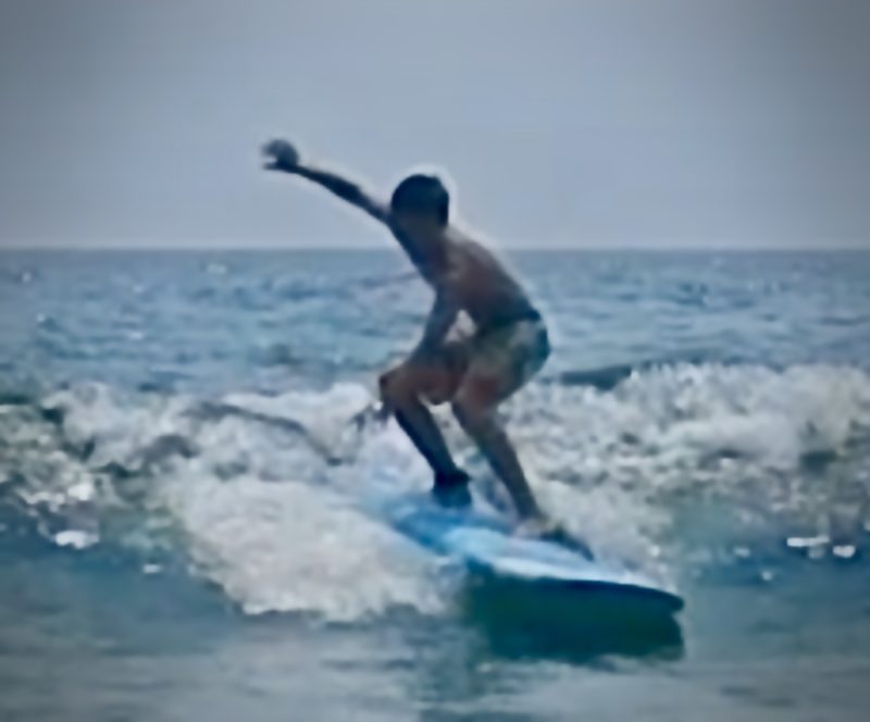 今回は2年ぶりのサーフィン。なのにいきなりパドルアウトし、いきなり波に乗れてしまうのがすごいところ。