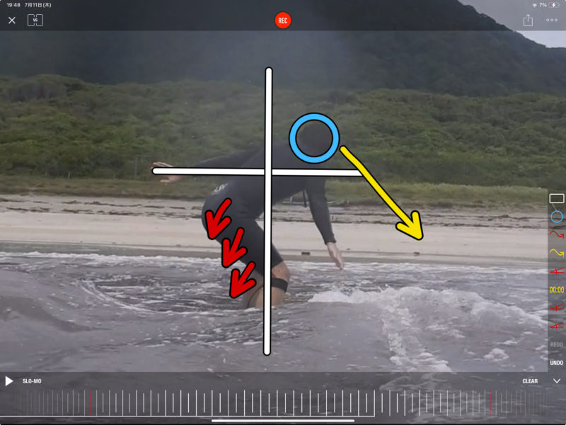 それを波を見て何を感じ、一つ一つの動作のタイミングを覚えていく練習。