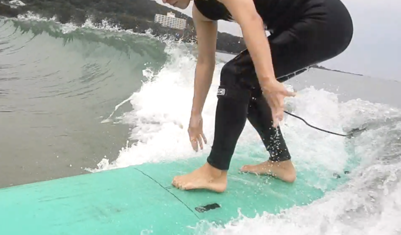 パドリング、そして波を感じ手をつき、そして立ち上がる。