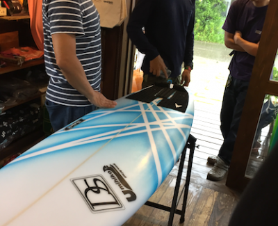 Sさんに今やってほしい練習をよりイージーにこなせるボード。その要望をシェイパーに伝え出来上がったオンリーワンボード!!