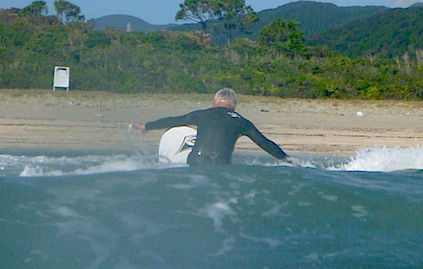 波待ち、方向転換の練習。最初はフラフラしてましたが、重心の置き方を意識するとかなり安定してきましたね。